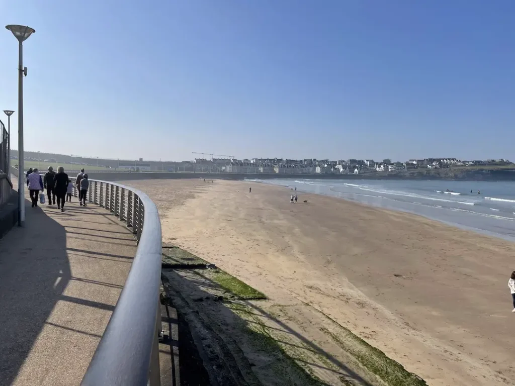 There are also several restaurants and pubs in the area that are very popular. Portrush is also known for its lively bars, such as Kiwi’s Brew Bar, The Springhill Bar, and The Harbour Bar, where you can enjoy a vibrant social atmosphere and live entertainment after a day at the beach. Many seaside establishments serve fresh local fish, with classic fish and chips being a favorite among visitors. Cycle or walk along the Promenade or simply get your feet wet in the water and moist sand on the shoreline. The Atlantic Ocean beckons on the one side of West Strand Beach, while on the other you will find, views of cute sea-front houses, paving, and parkland. A raised walkway running along the eastern boundary beach, the Promenade has quite a few sets of steps allowing you to get down to the sand easily.